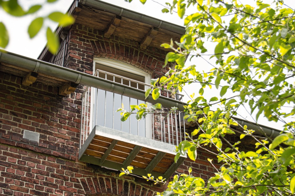 Für zwei benachbarte Reihenhäuser im Westen Aachens bestand der Wunsch nach einem kleinen Rückzugs- und Erholungsort mit Blick ins Grüne. Hierfür wurden kompakte Balkonkonstruktionen aus Stahl entwickelt, die vor die bestehende Klinkerfassade gehängt wurden. Die neuen Balkone erweitern den Wohnraum nach außen und ermöglichen einen einfachen Schritt ins Freie.