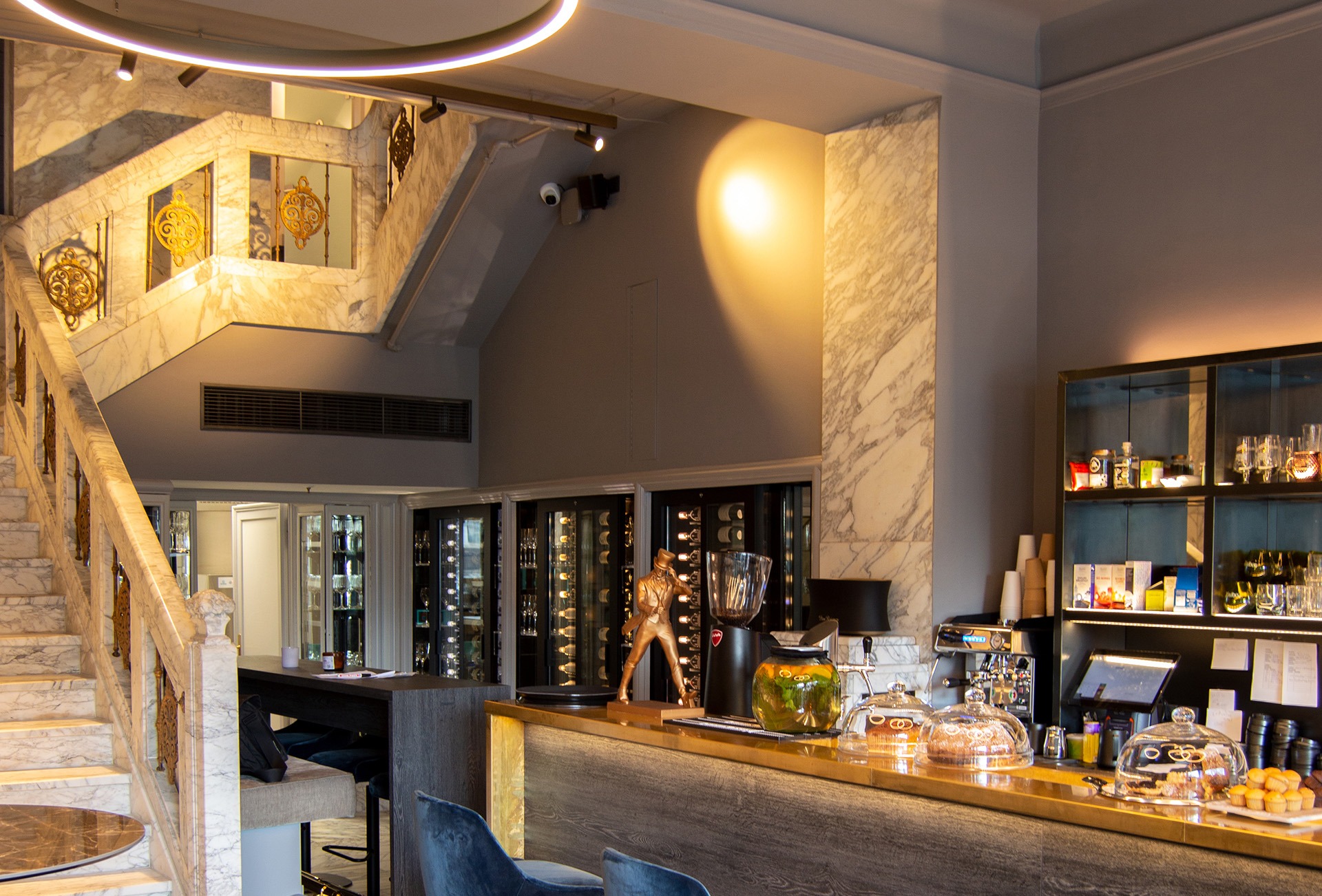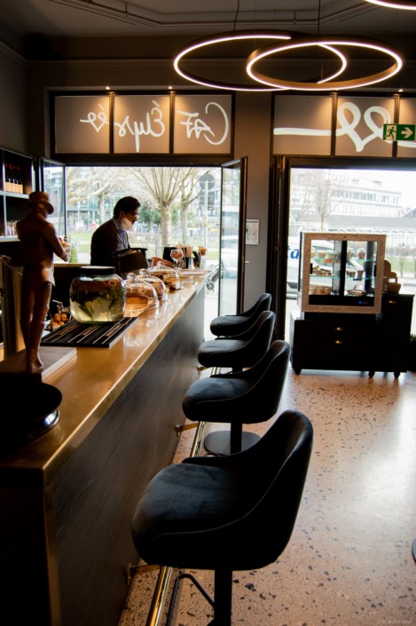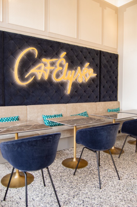 Direkt am Elisengarten gelegen, in einem historischen Stadthaus der Gründerzeit mit einer Aufstockung aus den 1990er-Jahren, befindet sich das CafÉlysée. Die ehemaligen Ladenräume eines Kleidergeschäfts wurden durch einen Durchbruch zum angrenzenden Ladenlokal erweitert und im Zuge dessen umfassend saniert. Teile der Ausstattung beider Lokale sowie Bereiche des Gebäudes stehen unter Denkmalschutz und mussten im Rahmen der Planung besonders berücksichtigt werden.