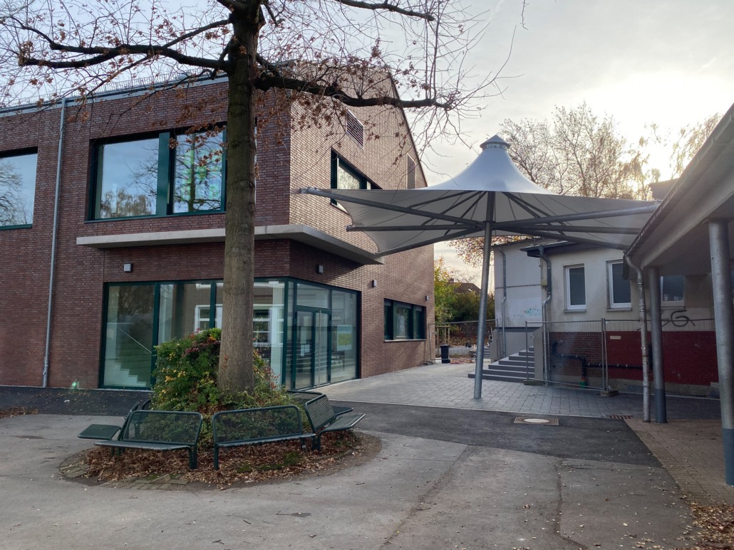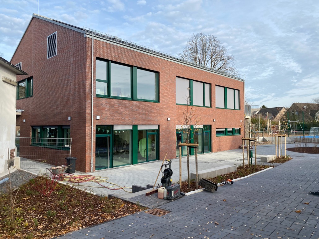 Mit der Einführung des Systems der Offenen Ganztagsschule (OGS) stieg der Raumbedarf an der Wurmtalschule in Scherberg. Im Rahmen der Erweiterung entstanden neue Räumlichkeiten für eine Mensa sowie zusätzliche Klassenzimmer in einem neuen Baukörper. Das Projekt basiert auf einem bereits vorhandenen Entwurf, unser Schwerpunkt liegt daher auf Ausführungsplanung und Bauleitung.