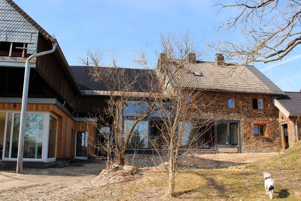 In einem kleinen Ort nahe der belgischen Grenze befindet sich eine historische Hofstelle, bestehend aus einem in den 1940er-Jahren wiederaufgebauten Wohnhaus, ehemaligen Stallungen und einer kleinen Schmiede.