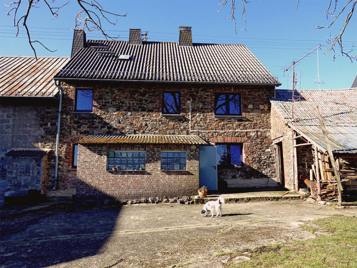 In einem kleinen Ort, nahe der belgischen Grenze, befindet sich die alte Hofstelle. Das Wohnhaus wurde in den 40er Jahren neu aufgebaut und wird von alten Stallungen und einer kleinen Schmiede ergänzt.