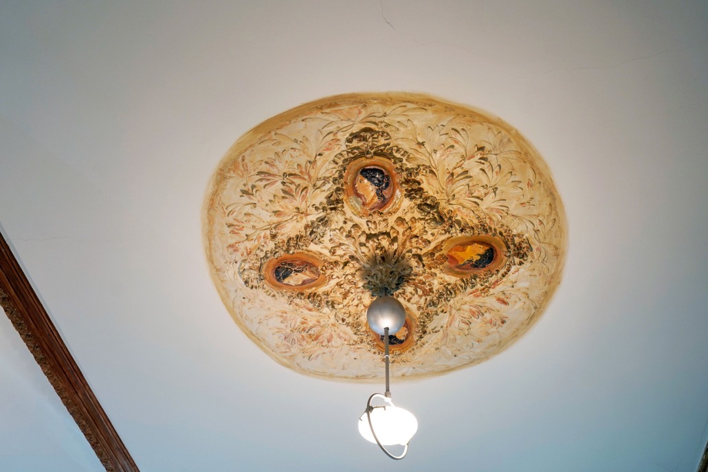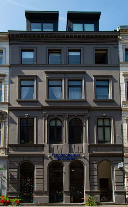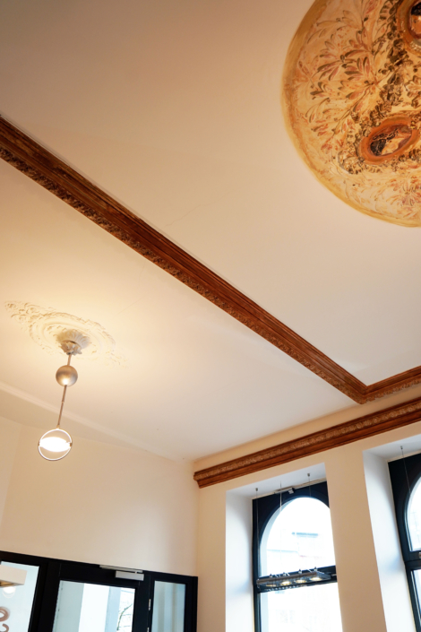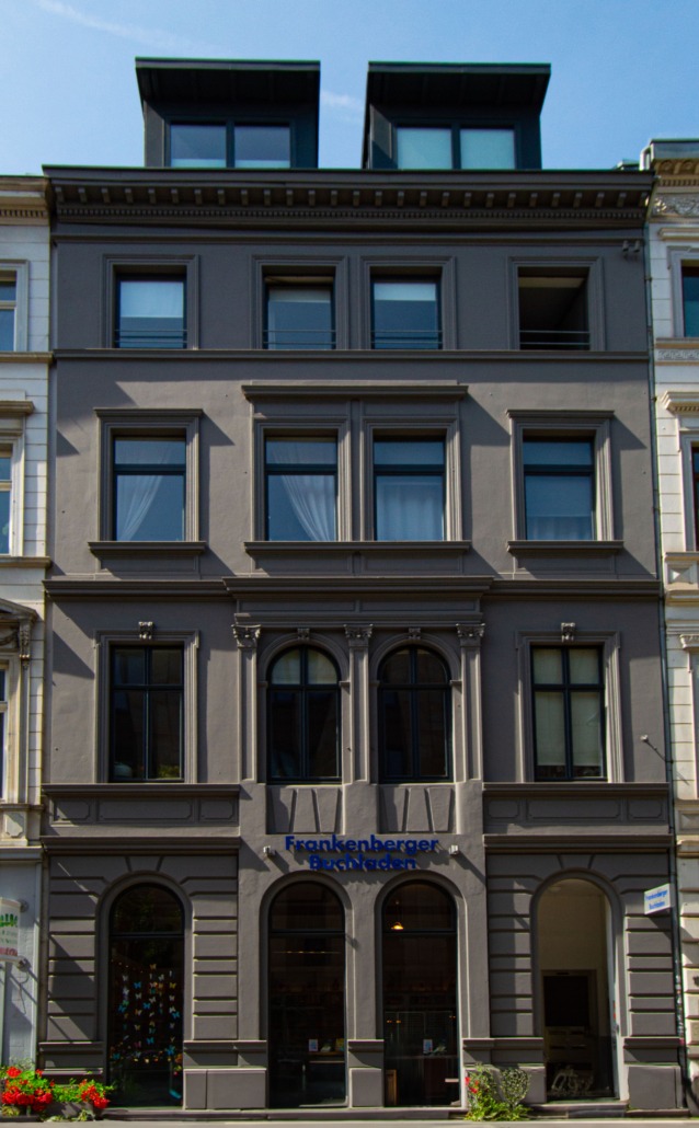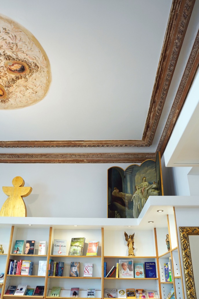 Im Erdgeschoss befindet sich der Frankenberger Buchladen. Hier wurde 2017 die alte Stuckdecke freigelegt und wiederhergestellt.