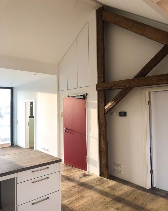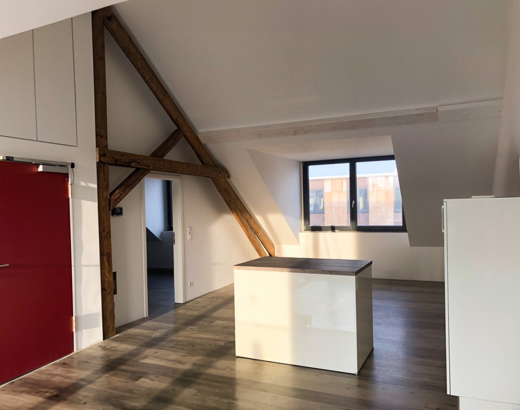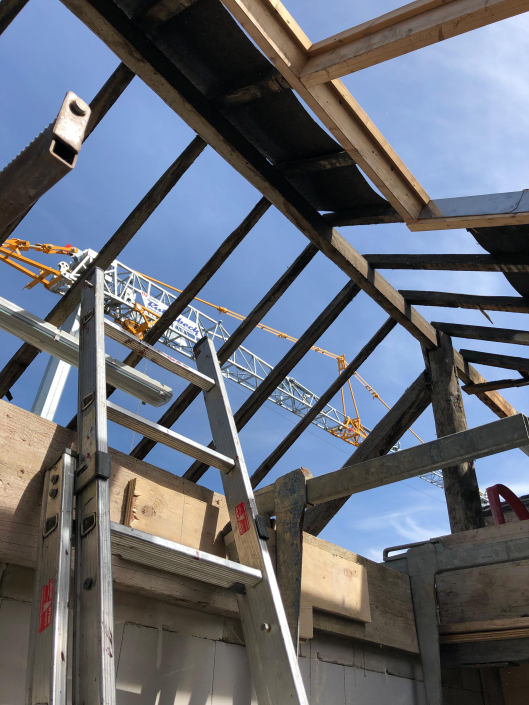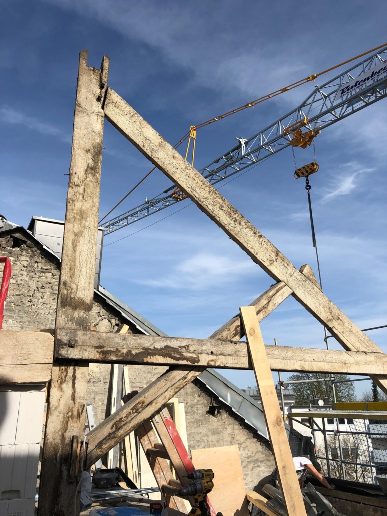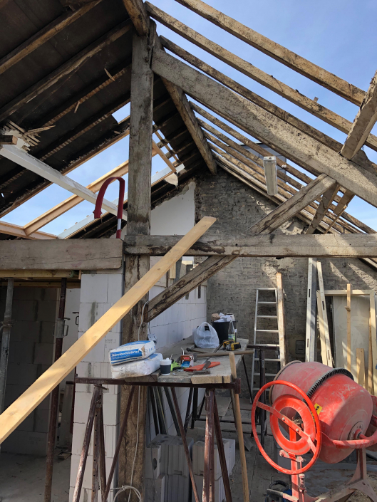 Der Dachstuhl wurde vollständig erneuert und mit Gauben auf der Vorder- und Rückseite des Gebäudes ergänzt. Er wurde vollständig mit Cellulosedämmung und Holzfaserplatten gedämmt.
